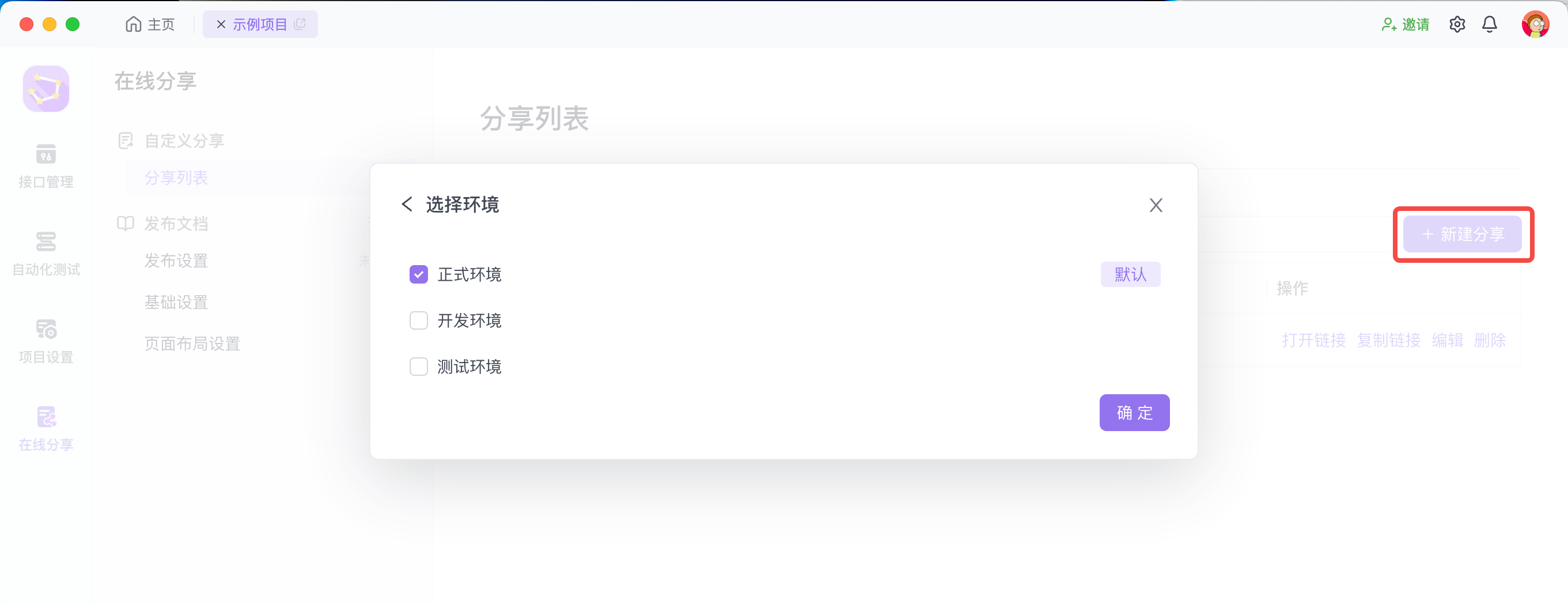 前置条件:发布 API 在线接口文档时,需提前设置环境。