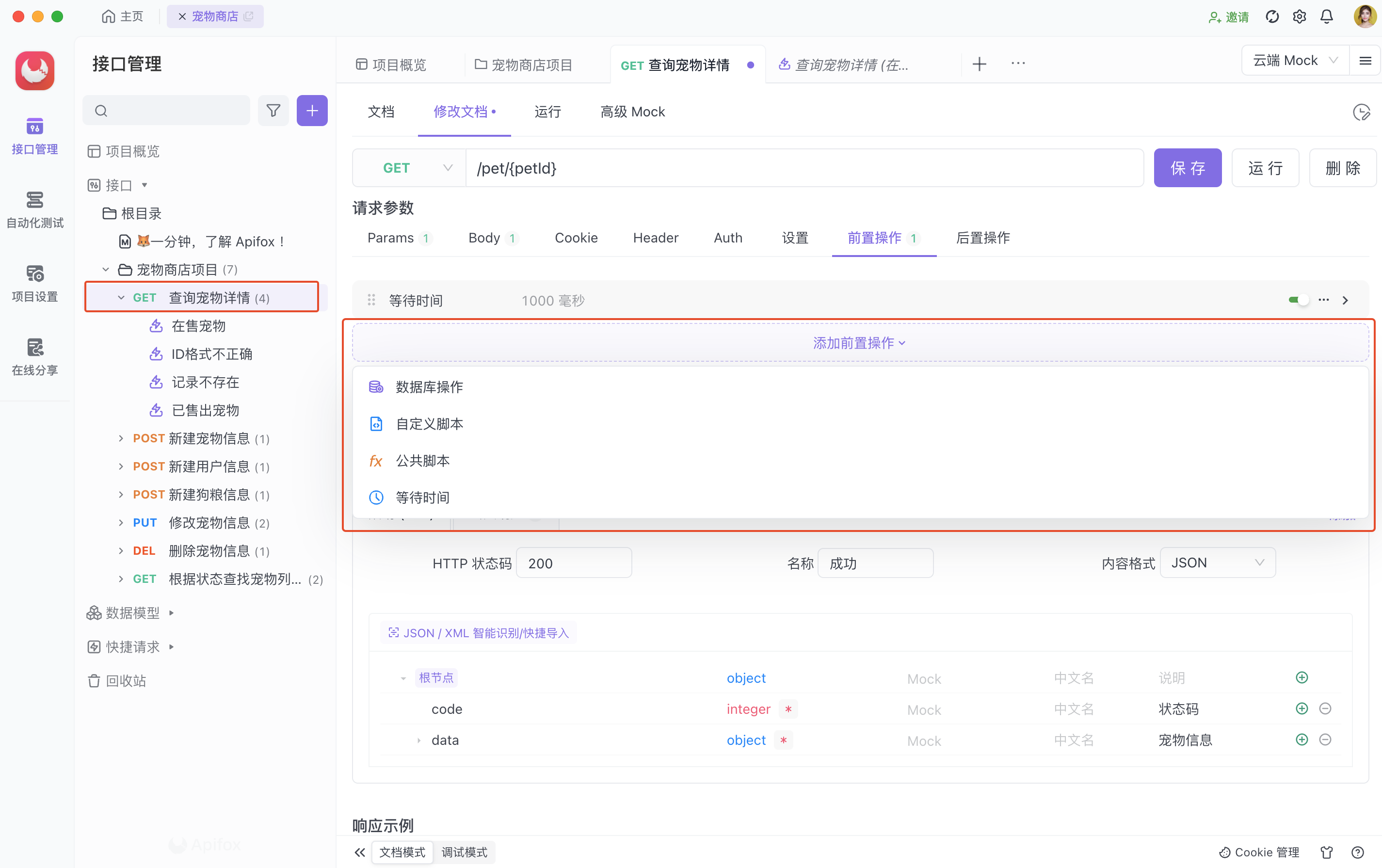 后置操作支持添加断言,可对接口返回的数据(或响应时间)设置断言,判断是否符合预期。查看断言功能文档