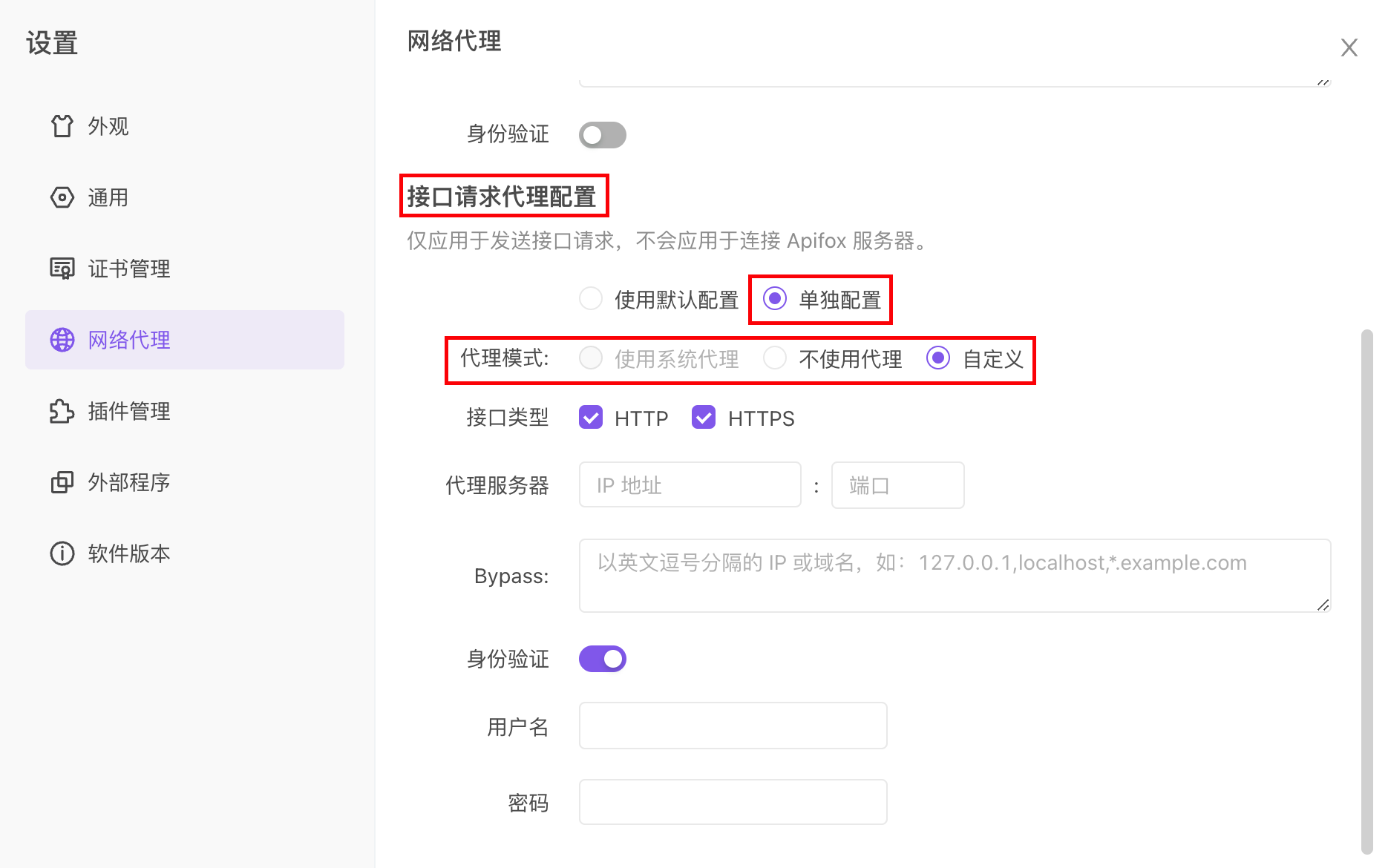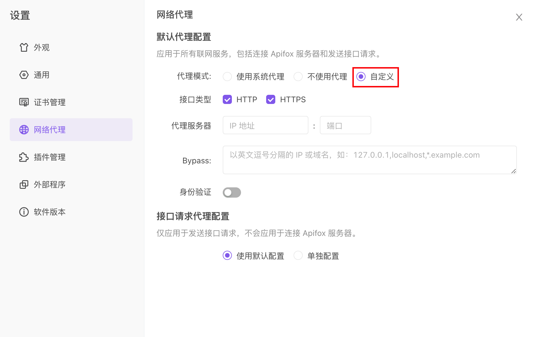 配置自定义代理,以便使用系统代理以外的代理服务器发送 API 请求。你可以通过自定义代理发送 HTTP 请求、HTTPS 请求或两种类型的请求。