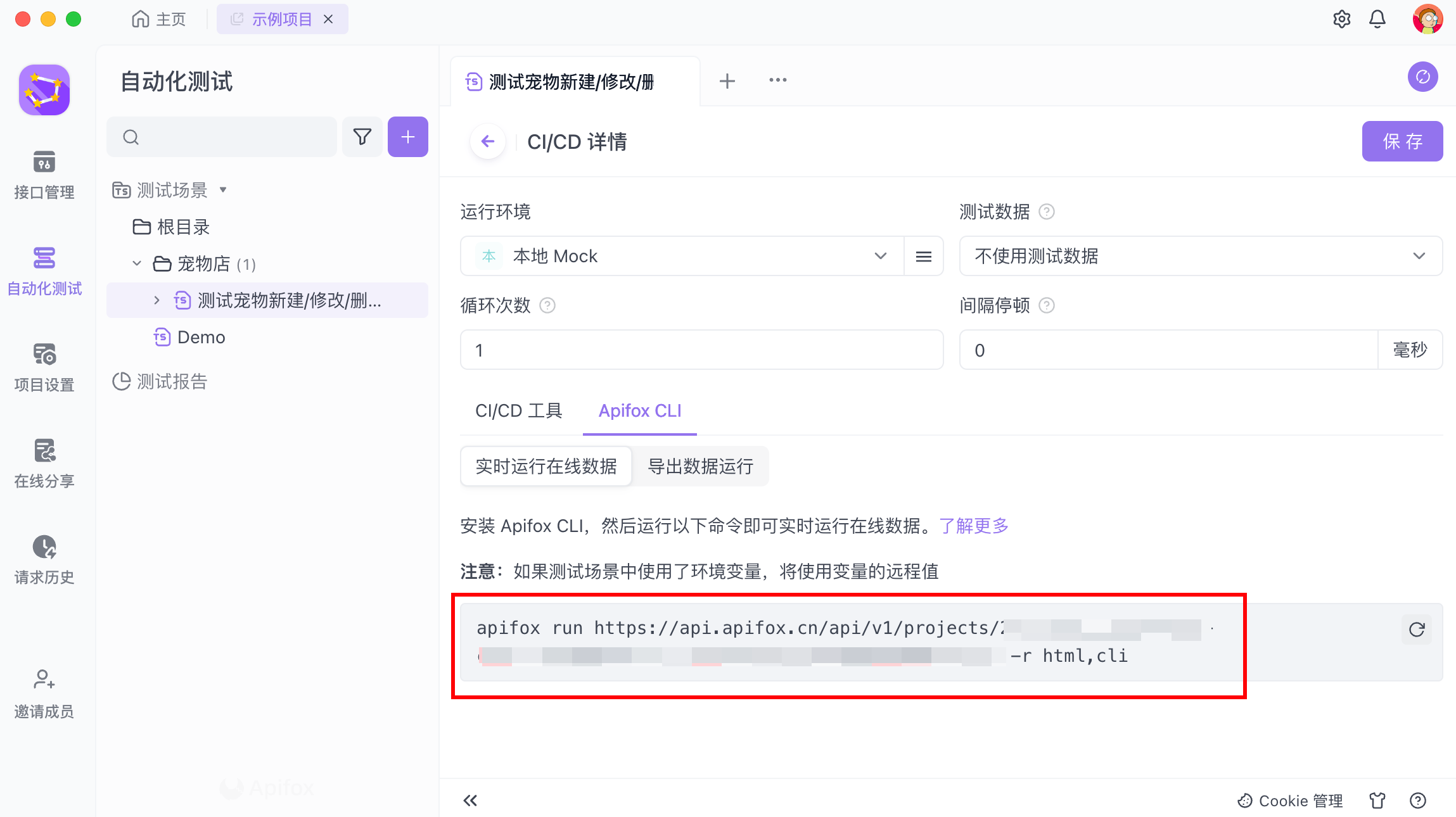 - 指定 Apifox 测试场景的 URL 或 文件路径