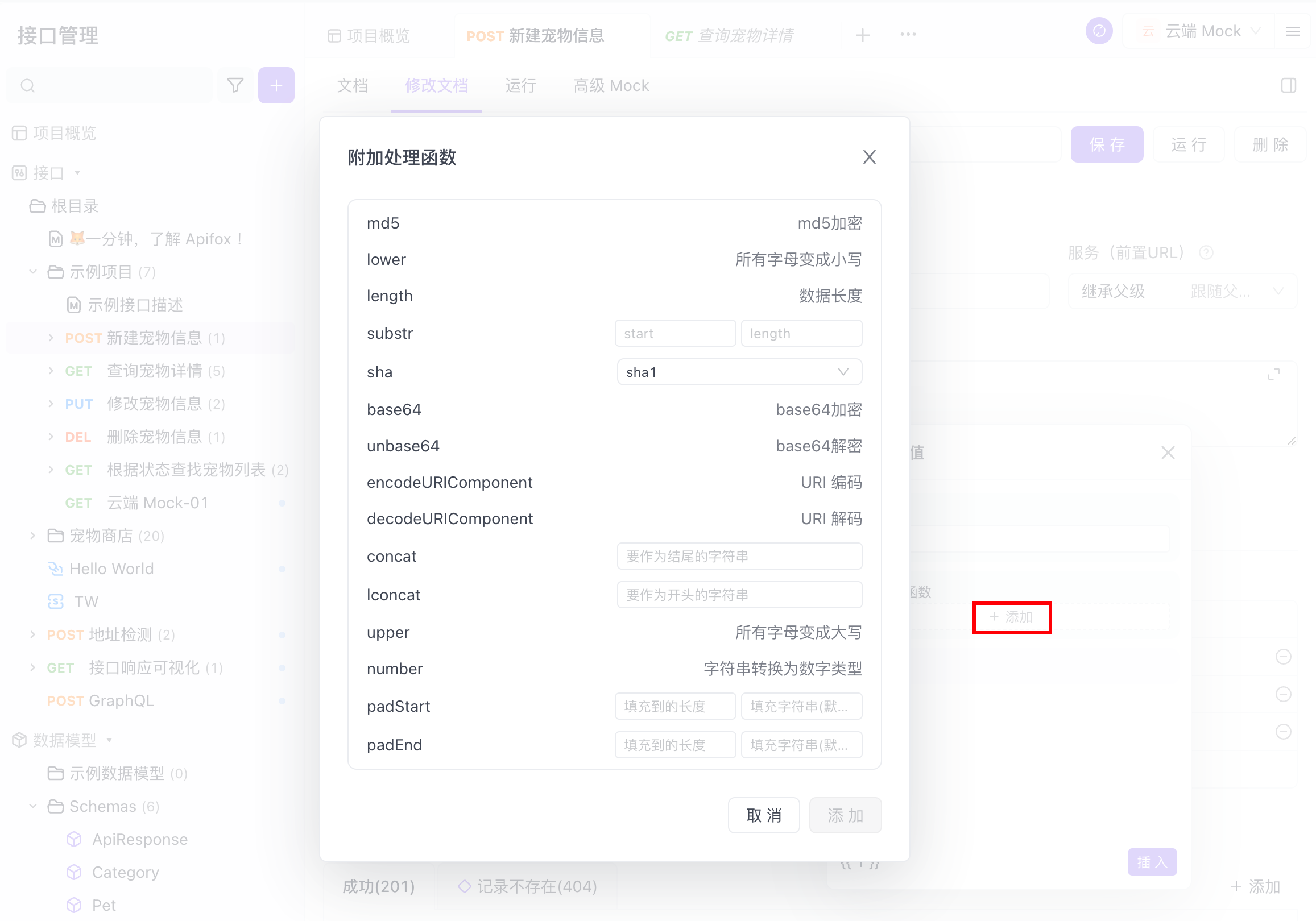 若不希望明文暴露固定值,那么可以点击“添加”选项,指定加密处理函数。