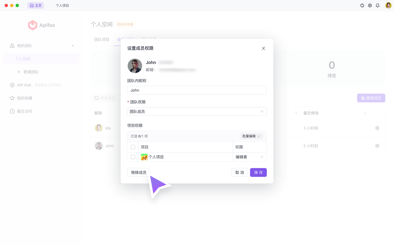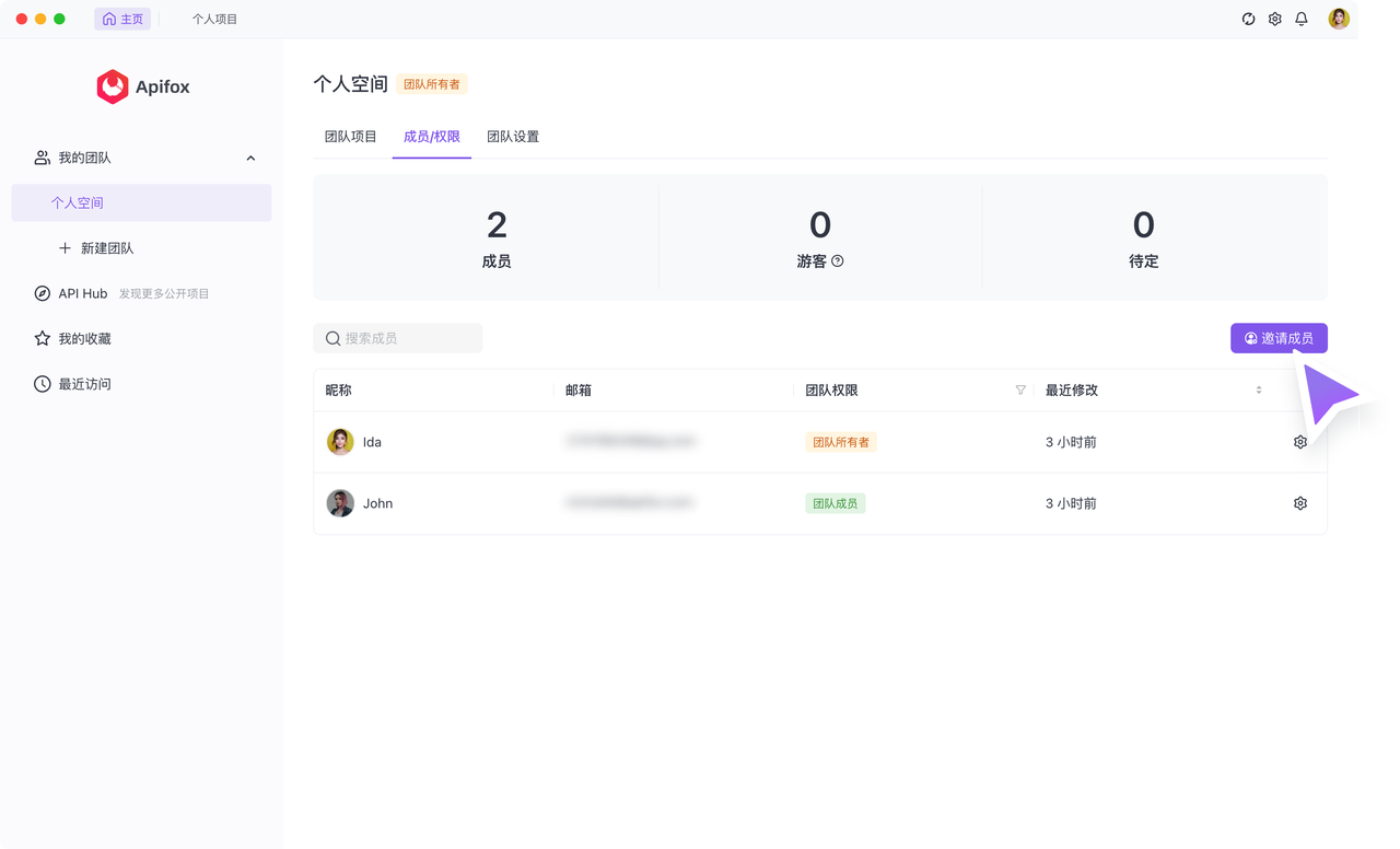 Apifox 提供了两种邀请方式,让你方便地邀请团队成员: